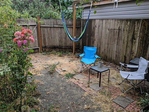 Nice FULLY FURNISHED two story cottage centrally located in the heart of downtown Eugene. Downstairs includes: Large master bedroom with queen size bed and large four drawer head board. flat screen TV. walk in closet. Upstairs includes: Shared kitchen/living space with a clawfoot tub and shower. Toilet in separate room from tub. Amenities include a futon, dining table, four burner oven, microwave, coffee maker, flat screen TV. and full size fridge. There is a one car parking spot in front of house. Nice secluded fenced side yard. Lease can be anywhere from 9 months up to 21 months. Application fee required. 9-21 month lease, owner will pay garbage service. tenant will pay for electric, sewer, and water.