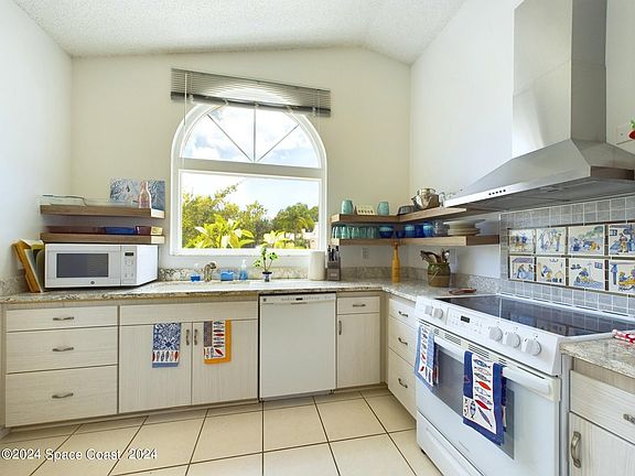 Bermuda Walk neighborhood offers a Key West flare - This beautiful home features nearly $68,000 worth of upgrades. New roof. Impact windows. Full kitchen remodel just to name a few. Lots of natural light. The open floor plan with vaulted ceilings allows for relaxation and easy entertaining with family and friends. The screen enclosed patio adds a pleasant outdoor living space. The kitchen is the central hub for entertaining with plenty or workspace. Great location. Close to everything. Fast access to interstate highway travel. Fantastic Community Pool. Lawn care included. City water and sewer. Landscaping has native Florida plants. Rocket launch views from the back yard!