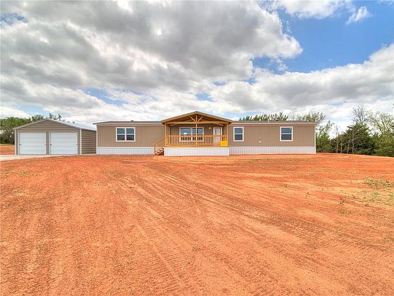 Brand New manufactured home, model Triumph TRU28765A, set up and ready for the new owner. Excellent location and beautiful views. This home offers and open floor plan with 5 beds, 3 bath on 2 acres with a pond. There is a nice covered front deck and an open back deck to sit on a view the pond. 2 car garage that is 24x25x9. Home is set up with a well, aerobic system, steel skirting, and ac. Schedule your showing today.