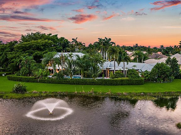 A One-of-a-Kind Estate with 350 Feet of Waterfrontage on one of Ibis's most valuable lots. Set on a rare .70-ACRE, pie-shaped cul-de-sac lot with 350 FEET OF WATER FRONTAGE, this majestic estate offers sweeping panoramic views of lakes and the Jack Nicklaus-designed Legend Course, holes 5, 6, and 7. Designed to impress yet created for everyday comfort, the property has been fully reimagined with a modern, zen-inspired aesthetic that emphasizes harmony, openness, and connection to its extraordinary surroundings. Inside, expansive windows flood the interiors with natural light and frame the resort-style pool and grounds. The flow between formal and casual spaces makes the home ideal for both intimate living and grand entertaining. A renovated chef's kitchen anchors the interior, complemented by a one-of-a-kind second, screened, outdoor kitchen and gathering spacecomplete with dual ranges, two sinks, a stylish bar, and ample seating for cooking and entertaining on a remarkable scale. Two incredible, renovated kitchensa true luxury.