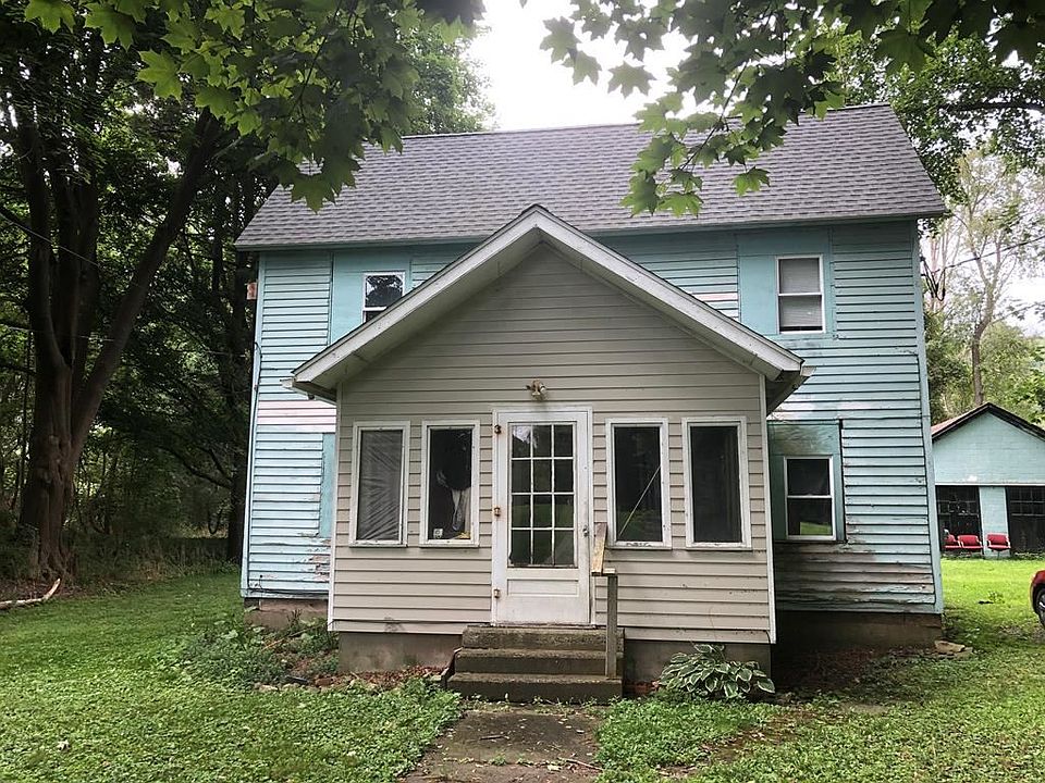 2 Story home offering 4 bedrooms, one larger bath, and first floor laundry. The first floor offers high ceilings, a large dining room, open stair case and hardwood floors. Nice level lot with trees and a detached 3 car garage. The home is in need of some TLC and care, but offers a new roof and some nice features.