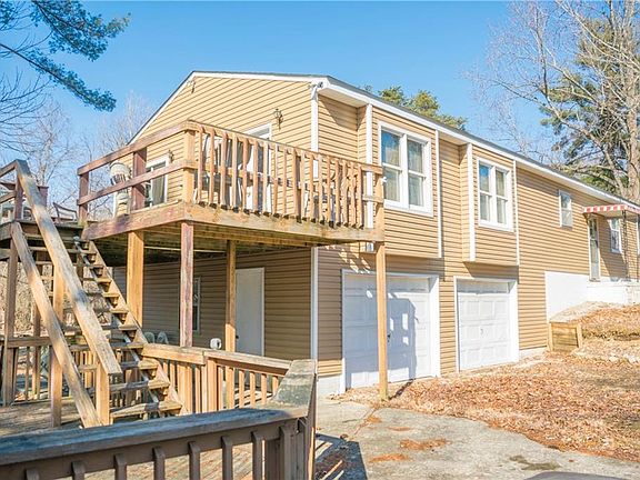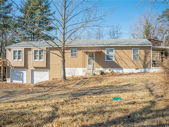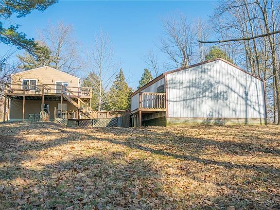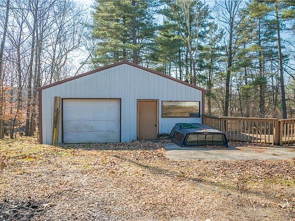 Spacious home with walk-out basement on 1.5 wooded acres + 2 garages. Large kitchen is open to family room, master bath has whirlpool tub + shower-large walk-in closet too! Room to grow and run on this spacious lot and 2 garages for hobbies or needs. Extra room in basement could be office or guest room. New roof and siding. Detached garage has two rooms to complete man cave! Owner does not want any showing until Monday.