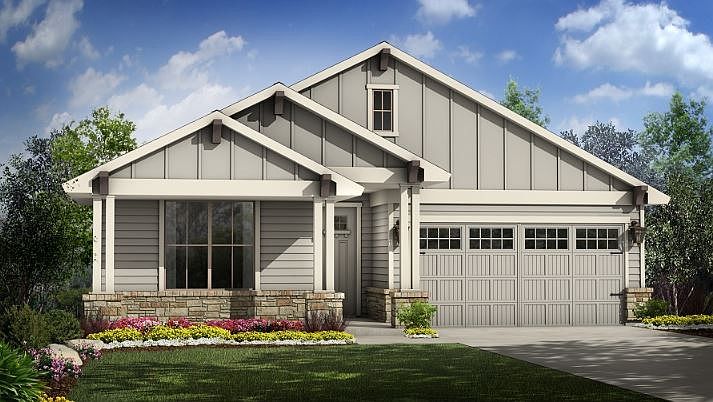 The Rockwood is a single story plan design featuring three bedrooms, two bathrooms, a family room open to the kitchen, a study and two dining areas. The master suite features a large walk-in closet. Options available to personalize this home design include a retreat, powder bath, bay window at the master suite, deluxe master bath, extended covered patio, outdoor living, five foot storage area at the garage, and a three-car garage.