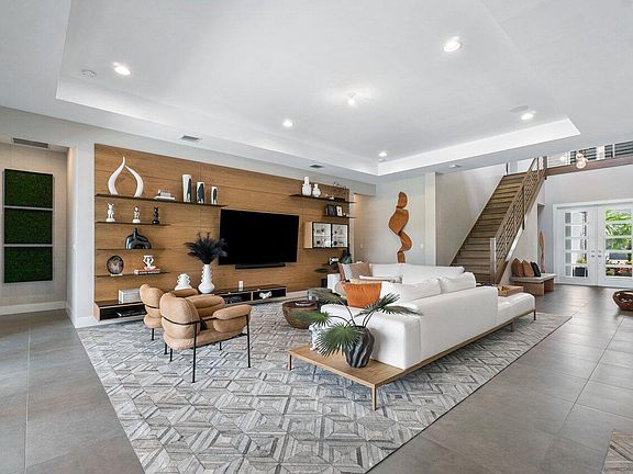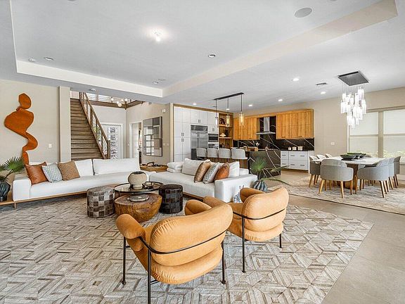 Experience luxury living in this stunning custom home with all new amenities. This home has incredible attention-to-detail in its outdoor space, elevated by incredible landscaping with lighting throughout allowing its beauty to be spotlighted at night as well. The decorative cedar wall and ceiling creates a warm and inviting atmosphere in this backyard patio. The gourmet kitchen boasts top-of-the-line Subzero refrigeration and Wolf appliances, and the home offers convenience with remote-controlled shades and Lanai screens. Entertain effortlessly with a custom bar, wine fridge, marble patio, and outdoor kitchen, perfect for alfresco dining. Inside, the office and living room feature custom-built wall units, enhancing both elegance and functionality. Read more... The garage offers custom flooring and storage solutions, ensuring a pristine and organized space. This home perfectly blends luxury, comfort, and modern convenience.
