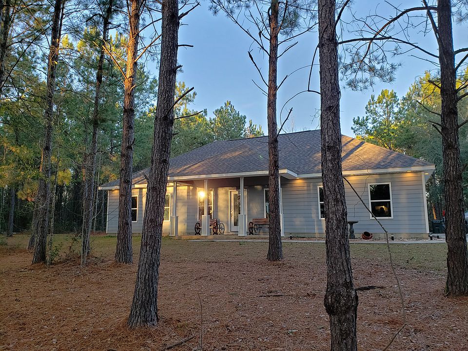 This 2250 SQ. FT. home set in the middle of 12.8 beautiful acres. This home has 3 master bedrooms each having their own private bathroom. There is also a 1/2 bath centrally located just of the kitchen for guest to use. This home also includes 2 covered porches totalling 350 sq. Ft and a large 21x13 foot courtyard area just off of the back of the home. This home is still like new, just built in February of 2017 , so merely 3 years old. The home is very open, modern and has plenty of natural lighting. Home has all stainless steel appliances and a nice built in entertainment center. If you enjoy peace and quiet then you will enjoy this home. For more information please call or text me at (251)250-6364.