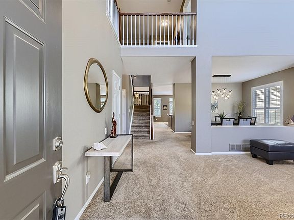 Four-bedroom/three-bath two-story home with great curb appeal. Outstanding condition, both inside and out. Two-story entry. Formal living/dining rooms. Main floor study. Large kitchen with granite counters, 42-inch uppers. Pantry + plenty of storage. Stainless steel appliances, including stove with upper/lower ovens. So much counter space! Four bedrooms up, including the primary suite with updated 5-piece bath. Walk-in closet. Three secondary bedrooms - all large enough for a king or queen bed. Convenient second floor laundry. Newer interior paint throughout (last 2 years). Three-inch plantation shutters throughout. Finished basement with flexible space and room for storage. Audio/video equipment and attached speakers in the basement stay. Furnace cleaned and serviced in 2024. Water softener and freezer in the basement are included. Meticulous backyard, with large, composite deck, low-maintenance artificial turf & drought-resistant plants. Ideally situated near the end of the cul-de-sac. Oversized 2-car garage (approximately 546 sf). Plenty of room for 2 cars and your extras. Seller is downsizing; some furniture can be included with the purchase; some items are for sale. HOA includes 4 state-of-the-art recreations centers. Most HOA documents available at: www.hrcaonline.org. Popular neighborhood in Highlands Ranch. Near so many services. Easy highway access. This is a popular floor plan (with 4-bedrooms up) is a must see!