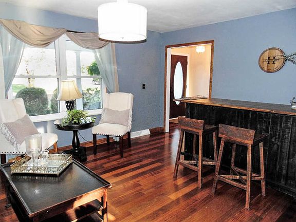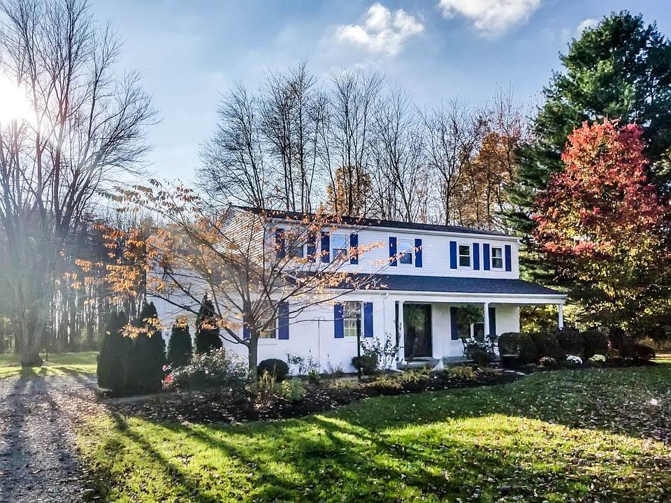 Beautiful 4-BR home on picturesque & private 5+ acres! Updated kitchen, gorgeous hardwood flrs & tile, new roof. Inviting living room, cozy family room w/woodburning fireplace, & spacious master bed w/adjoining bath. Full unfin basement w/lots of storage ready for you to make your own. Enjoy wooded view on front porch or backyard patio! Must see!