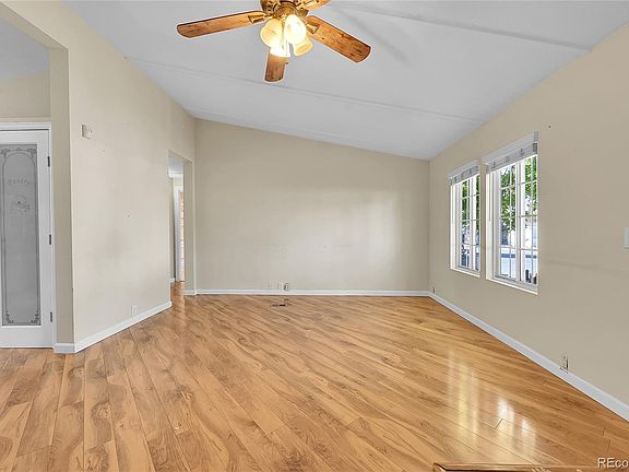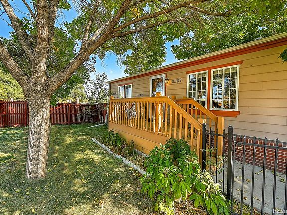 UPDATE 10/29/2024: Seller was informed HUD verification label was mailed. Seller is planning to respond to offer by this Thursday. please resubmit by 2pm Thursday. Unless CASH buyer everyone getting a loan will need to be patient with any hud documents. Featuring three bedrooms and two full bathrooms, this residence spans a total of 1231 square feet, offering a balanced combination of space and comfort suitable for everyone. The interior features a well-appointed kitchen with stainless steel appliances, dark brown cabinets, tasteful tile backsplash and a nice size pantry. The living room is highlighted by a vaulted ceiling and light wood laminate flooring, creating a bright and airy atmosphere. You'll appreciate the thoughtful touches throughout, updated lighting and wood accents that enhances the overall aesthetic. Updated bathrooms with travertine tile in the primary and tasteful tile in the secondary bath. Step outside to back yard and discover a private low maintenance yard, with mature fruit trees, a covered patio and composite deck. The property is fenced for pets and has an 8 x 10 shed. The front yard has, mature trees, green grass, is private decorative rod iron fence, with plenty of privacy to enjoy under the shady tree. Exterior has updated siding, garage was added & finished interior with recessed lighting. The two-car garage, which not only provides secure parking but also offers extra storage solutions with a workshop/tool room. This property is a compelling choice for those looking to invest in a welcoming and affordable neighborhood. Home is in great condition, just needs a fresh coat of paint to make it shine. Great location at end of cul-de-sac adjacent to open space, walking trails. The Riverdale Farms community, residents can enjoy access to local amenities such as club house, park, basketball court and playground, enhancing the overall quality of life. Minutes from light rail for easy commute to Denver and other light rail connections.