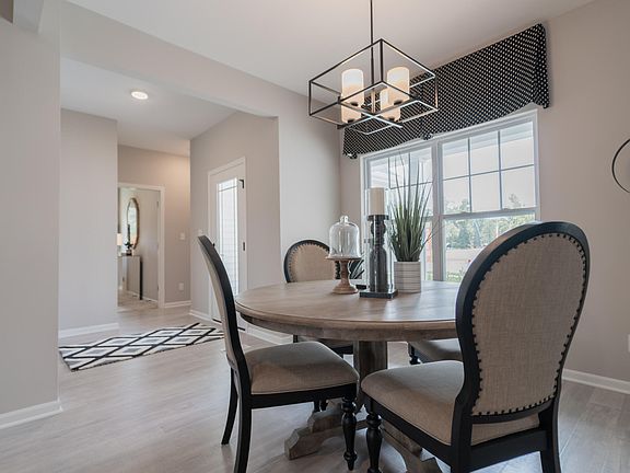 Welcome to the Wysteria, a split ranch home. As you walk in, you'll find the dining room. The dining room flows seamlessly into the kitchen. It features a spacious pantry that provides plenty of storage. The kitchen has Granite countertops, a 4 foot Granite Kitchen Island and 30 inch upper cabinets. Adjacent to the kitchen is the breakfast room, a cozy space perfect for casual dining. The great room is the heart of the home with Vaulted Ceilings. The split ranch design provides privacy and convenience. The primary bedroom is located on one side of the home. This spacious room features an ensuite bathroom with modern fixtures and finishes. The primary bedroom also includes a large walk-in closet, offering ample storage space. On the opposite side of the home, you'll find two additional bedrooms. These bedrooms share a full bathroom. Conveniently located on the main floor is the laundry room, The home also includes a partial basement with a 3 piece rough in for a future bathroom and Standard crawl space with Slush coat. The two-car garage offers ample space for additional storage. There is a 16x16 concrete patio for your patio furniture.Equipped with a 90% high-efficiency furnace and with professional landscaping that enhances its curb appeal.Photos are of a similar model with upgraded features.