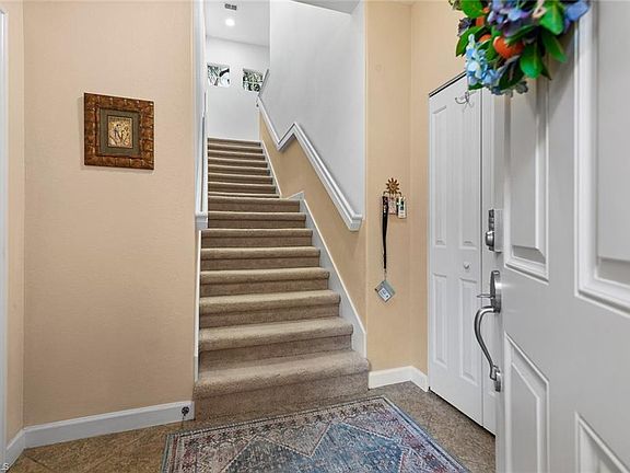 This listing present a fantastic opportunity in Rapallo, offering a spacious and flexible floor plan with nearly 2500 sq ft of living space. The second floor carriage home features three bedrooms and two baths, a formal dining room offering versatility as a media room, (the photos of this room has been AI staged to show how you can use this room) and the third bedroom makes large guest quarters or Media Room. The gourmet kitchen is a highlight, boasting ebony cabinetry, granite countertops, stainless steal appliances, a built in desk, a large pantry, and a center island. A Butler's pantry off the great room adds a perfect space for a coffee bar, wine cabinet, or additional storage. High end details continue throughout the home, with 10 foot ceilings, crown molding, and an oversized lanai overlooking a serene lake and boardwalk. The primary suite features private lanai access, primary bathroom a large walk-in shower and garden tub , while separate area includes a second bedroom and a second primary suite or an ideal retreat for guests with a Juliett balcony. A finished epoxy stone garage floor ads a polished touch to the oversized two car garage. Yu will love this location, just outside your door is the entrance to the Boardwalk and gas grill with a picnic table. Rapallo offers a true Mediterranean-style resort experience, designed for both relaxation and an active lifestyle. residents enjoy five pools, including two lagoon-style pools with a rock grotto waterfalls and a screened jr olympic lap pool. A clubhouse with a catering kitchen & library, state of the art fitness center with a saunas and a full time fitness director. Five Har-Tru tennis courts with stadium seating and a full time tennis pro. Bocce ball courts, jogging and walking trails, botanical gardens, and picnic areas, lakes and fountains throughout the community. Full time activity director ensuring a vibrant social calendar. PRIME LOCATION One of Rapallo's standout features is its unbeatable location. Just a short walk from Coconut Point Mall, you have easy access to: Find dining, specialty stores and essential retailers like Target Office Depot, TJ Max and Best Buy. The upcoming Marketplace featuring Millers Ale House, A wine bar, upscale pizzeria and additional stores. Beaches within 20 mile drive, Naples and Ft Myers, and SWFL International Airport all within a 20 minute radius. Rapallo is built to withstand hurricanes, featuring new roofs, hurricane impact windows and doors, minimal disruption from storms, with only a brief electricity and WIFI outages in the latest major storm. This rare second floor carriage home with a two car garage is a must-see, with the spacious layout, resort-style amenities, and a prime location, this is an incredible opportunity to own in one of the most desirable communities in Estero.