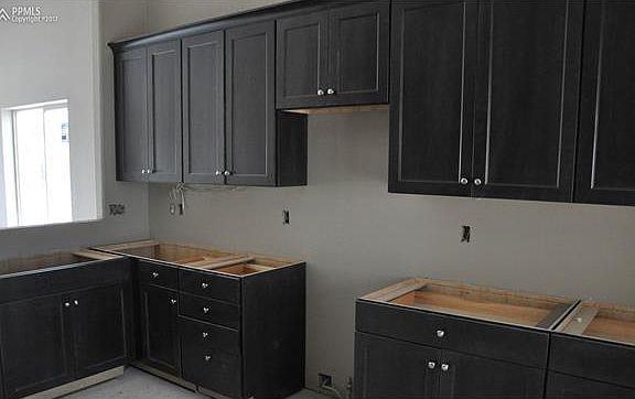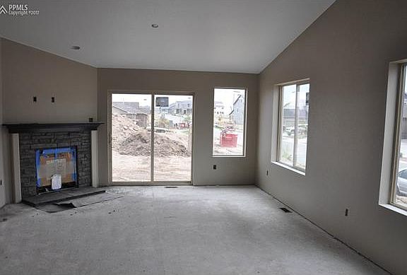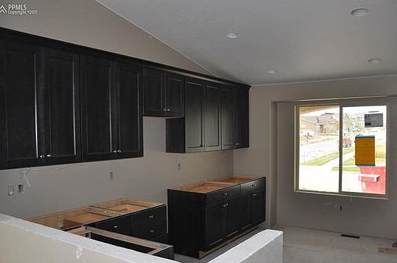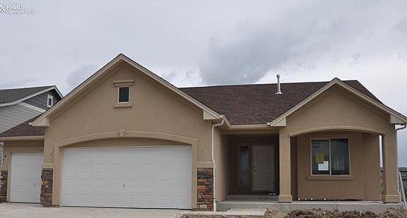 Ready in September. Providence II ranch plan with 3 car garage in Banning Lewis Ranch. 4 bedroom 3 bath home. Maple charcoal cabinets with 39" uppers, quartz counters and stainless steel appliances with gas range. Barn door at master. Optional master bath layout with expanded shower. Brushed nickel hardware. Gas fireplace in great room. Air conditioning. Finished basement includes 1ft. taller ceilings plus 2 bedrooms, 1 bathroom and recreation room. Exterior living includes 11x10 patio with gas line.