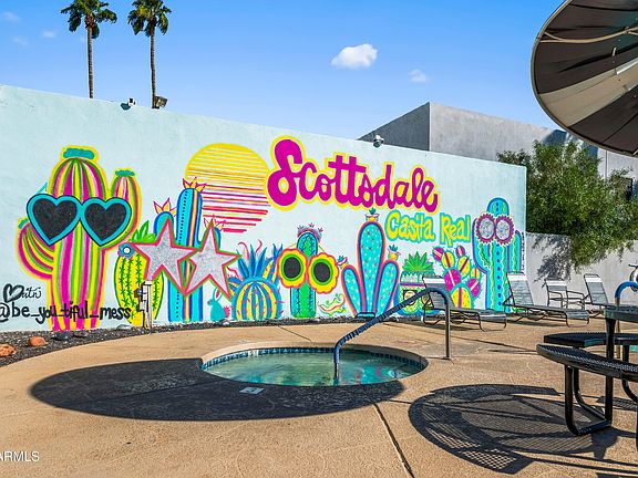 Welcome to Casita Real, a charming South Scottsdale community! This beautifully updated 1-bedroom plus den condo offers style, flexibility, and an unbeatable location just minutes from some of Arizona's best shopping, dining, and entertainment. Updated in 2019, it features wood-look tile floors, granite countertops and white cabinets in the kitchen, and an in-unit washer and dryer. This private interior unit is conveniently located near the community pool, surrounded by mature landscaping and plenty of green space. Enjoy community amenities including a pool, spa, grills, doggy stations, and a gated dog exercise area. Assigned covered parking and plenty of visitor parking add to the convenience. Perfect as a primary home, lock-and-leave getaway, or short-term rental with proven STR income.