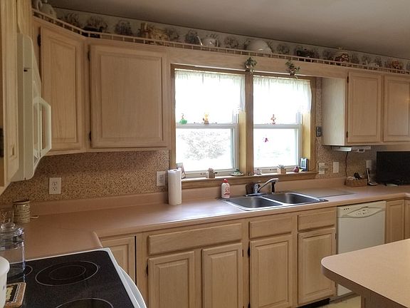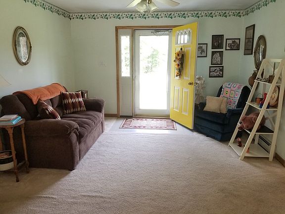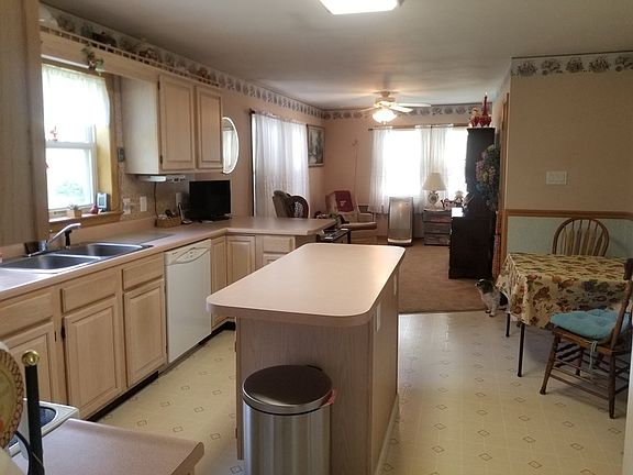 Hill Top Setting.....well cared for 3 bdrm 2 1/2 bath ranch w/ large front entry to open floor plan, master bdrm. suite ,3 car detached garage and circular drive... surrounded by 5 acre level treed lot, flower bds, campfire pit , nature at its finest. Roomy bright kitchen w/ island & applianced. convenient laundry off 1/2bath... this is a l995 Modular on full block foundation...newer boiler & electric hot water tank...If your are looking for a private yet convenient location....this might be it.....Buyers to be pre-qualified and follow all covid requirements.. 24 hrs. notice ..