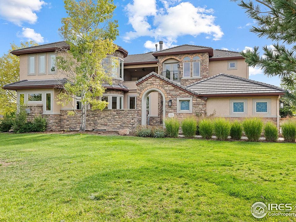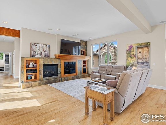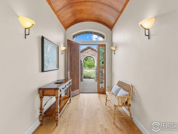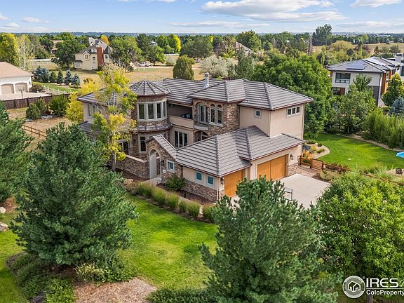 Nestled in the SW corner of Longmont lies an idyllic neighborhood of custom homes among tree lined streets. The Summerlin neighborhood provides charm and seclusion as well as the sought after convenience to parks, shopping, and access to Boulder. 8584 Summerlin Place is a prominent and distinguished home within the neighborhood standing on nearly an acre of land. Upon stepping inside you are greeted by an open foyer with a gorgeous wood inlay accenting the high arched ceiling. The main level opens up to a warm and generous living area with an adjacent dining space that flows directly to the kitchen. The kitchen is well appointed with designer finishes, plenty of prep space, and a breakfast nook, all of which is complimented by a warm stone fireplace. Two comfortable guest suites with a shared bathroom are also located on the main level which can also serve as a terrific office space. At the top of the stairs is yet another outdoor living space. The protected patio with its gas fireplace is a terrific spot to unwind. The upper level branches off into two wings. One side is host to the primary suite that includes a cozy sitting area with bay windows and a fireplace. The bathroom has the modern spa touches of radiant floor heating, an oversized glass steam shower with dual heads, and a sleek soaking tub. The second wing is where you'll find two additional bedrooms, a shared bathroom, and the laundry room. A highlight of the home is the outdoor living which is serene among a well landscaped and fenced in backyard. It's also a popular space for gathering with friends for a bbq and watching the Broncos game. The owner has kept incredible care of this home with a number of notable updates including a beautiful remodels of the kitchen and primary bathroom. This home is an exceptional opportunity to enjoy the luxurious comforts of a custom home within a boutique neighborhood.
