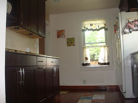 Charming Cape Cod,many updates including kitchen with Cherry Cabinets,Brazilian Redwood hardwood,new furnace(1 month),newer roof,and windows.Relax on the patio overlooking large backyard or covered front porch balcony. Potential to have a complete separate living space downstairs.Upstairs lounge area and 2 bedrooms w/hardwood floors. Home warranty!