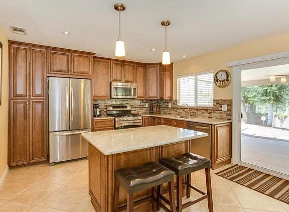 Just Reduced! Absolutely beautiful, remodeled, single story home in awesome location. Wonderful curb appeal, stained concrete walkway, welcoming front porch to your upgraded home including stacked stone facade and mailbox. Open kitchen offers tile flooring, island, granite counters, tile backsplash, pendant lighting, new cabinetry, stainless appliances, eating area with ceiling fan,and slider to back patio. The large family room centers around a stacked stone fireplace. The den/bonus room is spacious for gatherings. The large master bedroom has a gorgeous, remodeled master bathroom with custom tiled shower. Newer water heater. The additional bedrooms offer ceiling fans and share a hall bathroom that is remodeled. The backyard is wonderful, with plenty of mature trees and convenient alumicool covered patio with ceiling fan and storage shed. Walk to parks and Victoria Ave. trails.