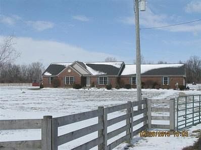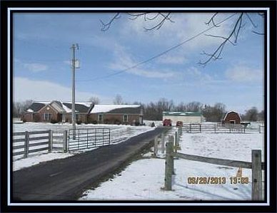 The perfect setting for a horse farm! Sitting on over 10 acres, this sprawling ranch features nearly 2600 SF of living space per county records. Grow crops, raise horses and enjoy many choices for true country living! The open floor plan's focal point is a large great room with vaulted ceilings, skylight and wood burning fireplace. Storage will be plentiful here with nicely sized rooms and walk-in closets. Upgrades include some newer windows, Pergo wood flooring throughout as well as remodeled bathrooms! 2 car attached garage too! There is also an electric fence surrounding the property. Huge pole barn with 4 horse stalls as well as a smaller barn with an additional 2 horse stalls.