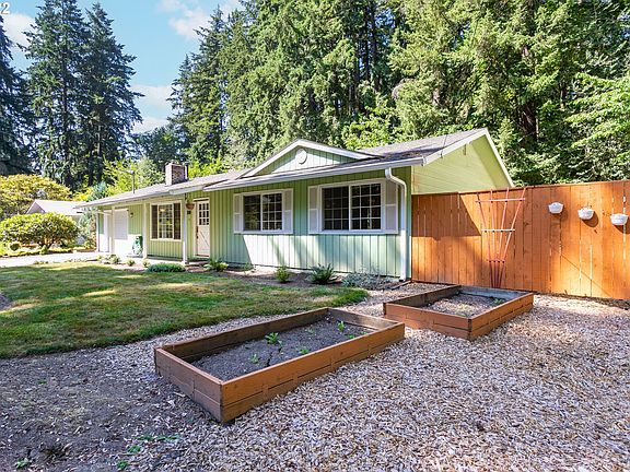 Rare 1 level ranch @ dead end of Garden Home St. Minutes to Washington Square, restaurants, shops & golf! Beautiful level lot approx. .35 acres w/park-like setting & great landscaping. Hardwood floors throughout home w/newer gutter system & 8-year old composition roof. Open floor plan w/living room, kitchen & dining room opening to the outside. The backyard oasis boasts a newer cedar deck w/an electric awning & stone fire pit patio.
