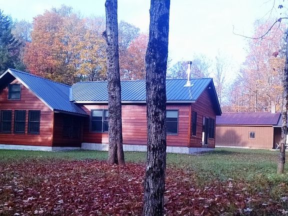 This property has beauty in all 4 seasons. The moment you drive in, you will appreciate the tranquil surroundings. This home has just under 50 acres, with trails, and direct access to the snowmobile trail system. A detached garage that is 24x56 has room for all your toys. From the entry room, you walk into a beautiful custom kitchen with hickory cabinets, and corian counter tops. The kitchen also offers a pantry and coffee station. An extra large master bedroom with walk in closet is off the kitchen. The dining room will amaze you with vaulted ceilings and wood beams. A spacious living room with a Lopi wood stove, and an abundance of windows that allows beautiful natural light in. This home was completely renovated in 2013. New well, septic, electrical, heating, and more.