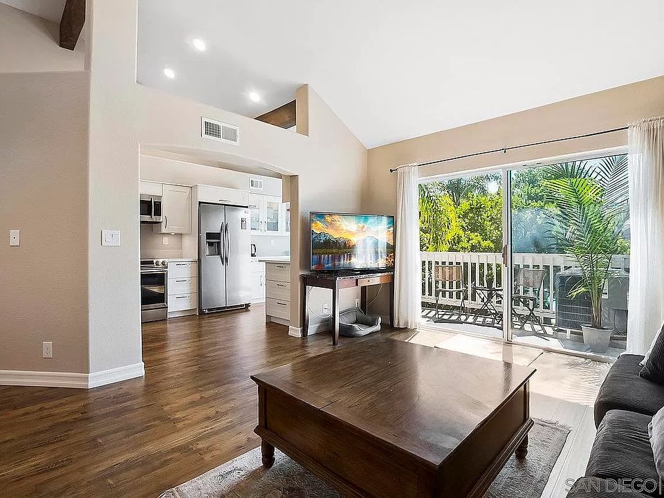 Convenient to all, yet tucked into a resort-like complex with lush landscaping and a dreamy pool, you'll want to call this unit home. A top to bottom remodel was completed recently and feels brand new making this place ready for you to move into. This second story corner unit feels more like a stand alone with no neighbor above and only one shared wall. Cathedral ceilings, a gorgeous kitchen with well appointed-updates and large bedrooms offering generous closet space complete this home. Flooded with natural light, you can cozy up to the fireplace inside or venture to soak in the sun poolside. Great location that is walkable to UCSD, Whole Foods, Trader Joe's, and shopping. With 2 bedrooms, 2 full baths, in-unit laundry, A/C, and a private 2 car garage this is the home west of the 5 you have been waiting for! Water included in HOA.