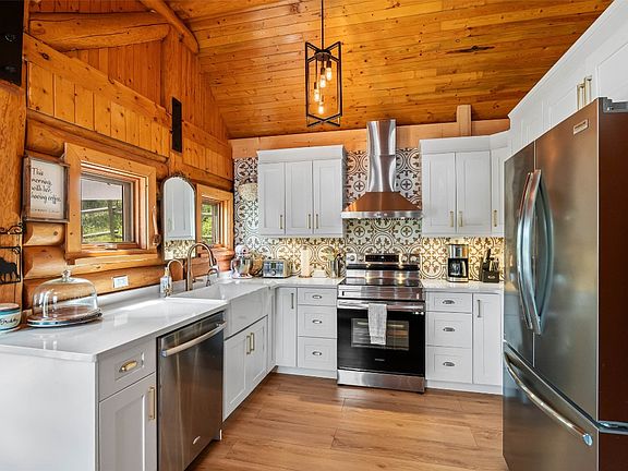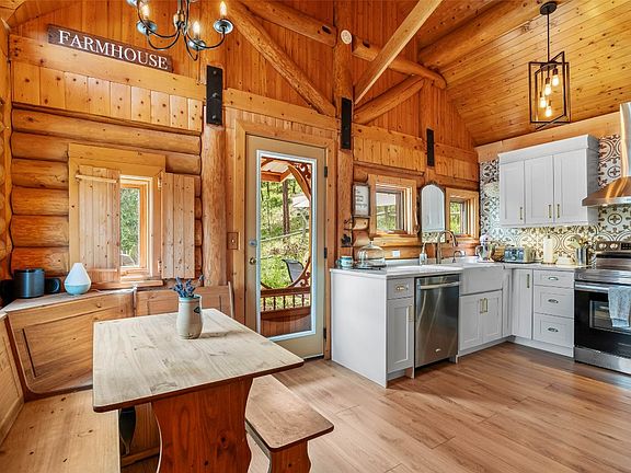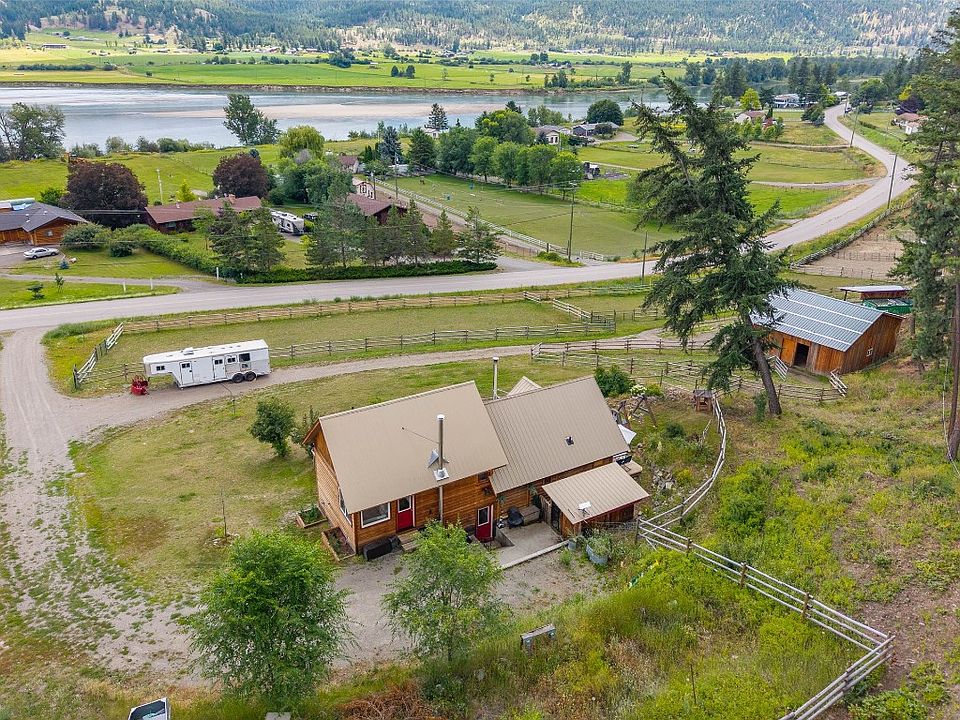 Welcome home to this charming 2 bedroom, 2 bathroom log house nestled on 5.79 acres in Black Pines. Step inside to discover a beautiful modern kitchen featuring stainless steel appliances, stone countertops & plenty of cupboard & counter space, complemented by a bright dining room area. Enjoy the cozy living room enhanced with a wood burning stove for efficient heating throughout. The loft primary bedroom offers a tranquil retreat with a spacious walk-in closet and an en-suite bathroom with a separate tub & shower, providing comfort and privacy. On the lower level you'll find a second bedroom, full bathroom, & a convenient laundry area, offering practical living spaces for your comfort. The property is tailored for horse enthusiasts, with fenced and cross-fenced areas, a custom 28'x36' barn complete with paddocks & insulated tack room, new riding arena, dry pens, & rotational grazing areas ensuring the well-being of your equine companions. Enhancing the appeal of this property are outbuildings (all under 10 years old) that provide ample storage and functional space for various needs. Additionally, a welcoming guest cabin invites visitors to enjoy the peace and serenity of the surroundings. With stunning river views as the backdrop, this property offers a unique opportunity to embrace nature and country living while still being conveniently located. This home offers so much potential, as it's turn key, & also offers the possibility to expand the living the space if needed.