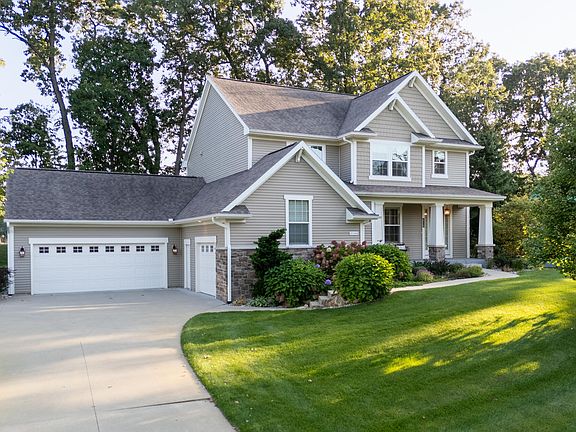 Welcome to Barrington Shores! This stunning 5-bedroom, 4.5-bath home is located in the highly desirable Mattawan School District & offers over 4,000 sq ft of beautifully designed living space. Nestled on a peaceful wooded lot with lush greenery & scenic walking trails just steps from your front door. Inside, a bright foyer sets the tone for this thoughtfully crafted home. The spacious living room features a cozy gas fireplace framed by custom built-ins & an abundance of windows dressed with custom Hunter Douglas window treatments framing stunning views of the private backyard. The kitchen is a true centerpiece, with an oversized island, granite countertops, striking white cabinetry, top of the line stainless steel appliances including a Bosch diswasher & a walk-in pantry. Just off the kitchen, the dining area opens to the back patio overlooking the cherry orchards & Vineyards. A large mudroom with built-in lockers, seating, & a flex space for storage or a secondary pantry connects to the attached 3+ car garage. The garage is a highlight, featuring painted walls, epoxy floors and Liftmaster smart garage door openers. A stylish office or formal dining room & a half bath complete the main level. Upstairs, the primary suite is a serene retreat with tray ceilings, a sitting area, & a spa-like ensuite featuring two walk-in closets, dual vanities, a soaking tub & a walk-in shower. Two bedrooms share a Jack-&-Jill bath, while the junior suite includes its own ensuite bath. The 2nd-floor laundry room is designed for convenience, featuring Maytag washer & dryer, ample counter space, built-in cabinets, & a utility sink. Enjoy even more living & storage space in the finished lower level, complete with a large recreation room, a 5th bedroom & a full bath; ideal for entertaining, relaxing, or hosting guests. Additional features include, ADT security System, Lutron Caseta smart switches, Culligan Water Softener & LeafFilter gutter guards, Barrington Shores is one of Southwest Michigan's most scenic neighborhoods, set among mature trees along the Pretty Lake Preserve & adjacent to Duck Lake. Community amenities include paved trails, a playground & swing set, tennis & basketball courts, a community pool, & more. Don't miss your chance to join this incredible community!