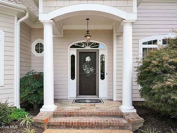 Quality & style combine in this stunning home built by Barker & Canady Custom Homes. Located in the resort-style, gated community of Compass Pointe, with golf course and pond views. Property offers 3 bedrooms, 3.5 bathrooms, dining room, sunroom, screen porch, and an office. Hardwood floors are found in the main living areas & office, and granite counters grace the kitchen & primary bath. Kitchen includes counter-height seating, grey cabinetry, cooktop with hood vent, wall oven & microwave, and double door pantry. An informal breakfast area is perfect for daily meals, while the formal dining room, and well-appointed butler's pantry/wet bar, allow you to take entertaining to the next level. The open living room is enhanced with an elegant fireplace featuring a stacked stone surround & hearth, flanked by bookcases & cabinets. Adjacent the living room is the bright sunroom, with access to the stamped concrete back patio. The primary suite includes a bay window overlooking the golf course, two walk-in closets, separate vanities, and a spa-like oversized tiled shower with dual shower heads and frameless glass door. The office, with direct access to the screen porch, and guest bedroom share a Jack & Jill bathroom. The laundry room includes white cabinets, utility sink, and a built-in drop zone. Washer & dryer convey. A half-bath completes the main level. A 3rd bedroom, with its own bathroom, is found on the second level, along with access to the attic storage. The enlarged 2-car attached garage provides room for a golf cart. You'll also find a walk-in storage closet and a side utility door. Additional features include a Bradford White Water Heater (2024), Grinder Pump (2025), and St. Augustine Sod in front lawn (2025). Compass Pointe amenities include a grand lanai, fitness center, indoor/outdoor pool, lazy river, tennis, pickleball & basketball courts, kayak launch, lake/canals, dog park, walking/biking trails. Only a short ride to Downtown Wilmington and area beaches.
