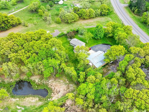 650'+ feet of Riverfront on 30 acres of land with house, 2 detached 24x24 garages + large 48x56 Heated & A/C Garage/Workshop with office and bathroom, & 200amp elec! Pole building/garage with 11' sidewalls and tall door, + 2 other outbuildings. Property has 2 PID numbers. The home features 2x6 construction, new windows, a 4-season Sunroom with vaulted ceilings, hardwood floors, open to the dining area, country kitchen with custom cabinets, beautiful ceramic tiled walk-in showers in both bathrooms. Finished basement features family room, a nonconforming bedroom (has window, not egress), a spa room with jetted tub, tiled bath and walk-in shower. This amazing acreage property is great for recreation, riding, fishing, shooting, hunting, planting, horses, hobby farm. Great location, only 6 miles to Hwy 169, and 8 miles to 47, and 21 minutes from Hwy 65.