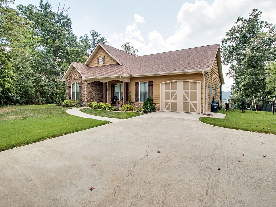 Year round lake view, craftsman-style home has 3b/2.5ba w/1753 SqFt., level concrete drive, fenced backyard, attached garage, screened deck and hot tub. Custom built, 1 owner, gas fireplace, 13' ceilings & vaulted tongue/groove ceilings. Large windows (lake view), whirlpool tub, hardwood flooring & more. 3 miles from I-40. Offered fully furnished.