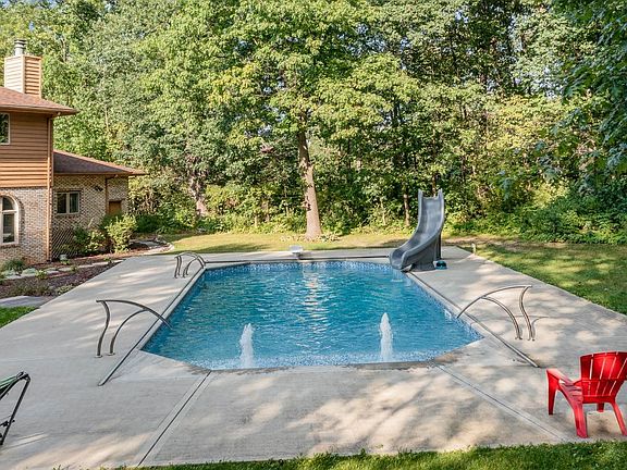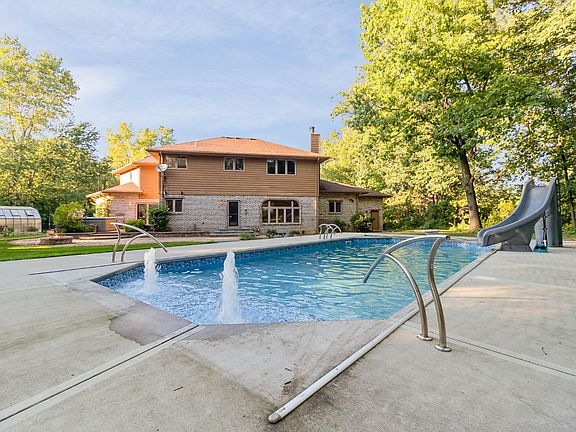 CUSTOM 5 BEDROOM 4 BATH HOME ON A BEAUTIFUL WOODED 5 ACRE PARCEL WITH NEW (2019) 20 X 40 IN-GROUND POOL WITH AUTOMATIC COVER, SLIDE, DIVING BOARD AND SPLASH PAD! Recent updates include New luxury vinyl plank flooring on main level (2019), Updated landscaping including paver patios in front and back and stone walk way (2019 & 2020), New Stainless Range, Dishwasher and Refrigerator (2020) and new kitchen fixtures (2020). Main floor includes large Living room/Dining Room, Updated (2016) Kitchen with new cabinets, Granite Counters and Island, Family Room with Fireplace, main floor Bedroom, Full Bath and main floor Laundry. Upper level includes Master Suite with Whirlpool Tub, Separate Shower and WIC, 3 additional Bedrooms and a Full Bath. Full Finished Basement includes Rec Room with new Carpet, Office/Den, Huge Storage Area and a 3/4 Bath. Additional features include Zoned HVAC with 2 systems, Whole House Generator and Fenced garden with Green House. Luxury Country Living in Town!