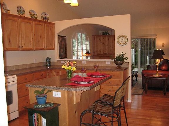 Beautifully kept home in Golden Spike Estates 55+Community. Lrg arched windows w/beautiful plantation shutters, huge cooks kitchen w/island-breakfast bar, solid hardwood floors-kitch-dining-LR, Gas FP w/hidden TV Cabinet, formal dining or could be a den/office, A/C, FAG, low maint ext yard w/drip, fenced, covered front and rear patio, corner lot w/exceptional views. All Golden Spike Amenities included.