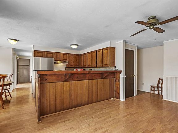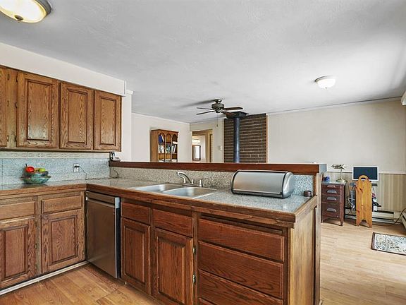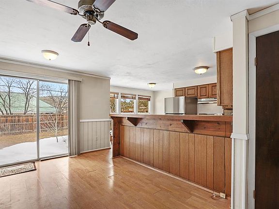 Great in-town living with this well maintained 3 bedroom/2 bath ranch style home. Excellent location with short distance to downtown shops, restaurants, and schools. Cozy and large living room with attractive stone hearth and fireplace insert. Kitchen offers plenty of cabinet and counter top space with bar seating, stainless appliances and granite counter tops.. The garage has been converted for multiple potential uses such as additional living space or shop/studio. Large privacy fenced backyard and mature trees great for kids and pets. Seller has enjoyed many years of ownership and the convenience of quiet in-town living.