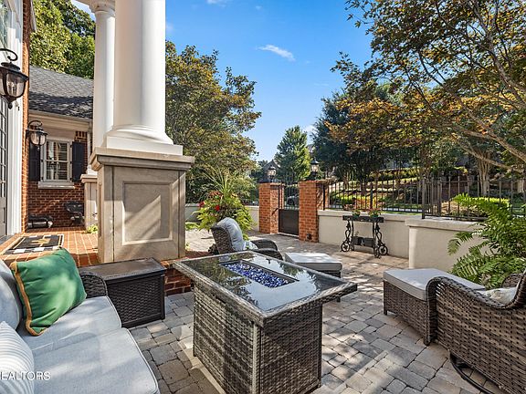 Luxury awaiting you at a former Parade of Homes residence in the heart of Farragut. Sellers added a inviting court yard with a fountain for a welcoming entry. 5 bedrooms 5 full and 2 half baths with hydraulic elevator with access to all three floors, and 3 car garage with a epoxy enamel floor. 10 foot ceilings on main and first floor with 9 foot ceilings on the top floor. Superb quality with solid core wood doors through out and extensive crown molding and detailed mill work. Originally a Builder's personal home with top of the line materials through out. Surround sound in the interior and exterior. Gorgeous hardwoods. All bedrooms are ensuite. All baths with granite counter tops. Palladian shades in the formal dining room with chair rail. Two washer and dryer connections with the lower level washer and dryer conveying. Main level laundry room with utility sink , and cabinets. Tile on the lower level. 2 story marble entry with dramatic curved staircase. 2 story great room with marble surround fireplace with gas logs. Fabulous kitchen with wolf gas range and convection oven, sub zero refrigerator, island open to the keeping room with masonry stacked stone fireplace with gas logs leading to a screened porch. Primary suite on main with fabulous primary bath with fountain, dual entry ceramic tile walk in shower with two shower heads and additional sprays, separate make up area with mini-refrigerator and additional sink, and 2 walk in closets with many built ins. Dual staircase. Poured walls in basement. Gas hook up for a grill on lower deck. Media room with the projector and screen conveying. Additional living quarters down with a kitchen/wet bar and 3rd marble surround fireplace with gas logs. Lower level includes a bedroom and full bath, study, rec room, plus storage and safe room. Central vacuum. Hvac units installed in August 2017, October 2018, and May 2016. Two water heaters installed inOctober 2023 with 6 year warranties.