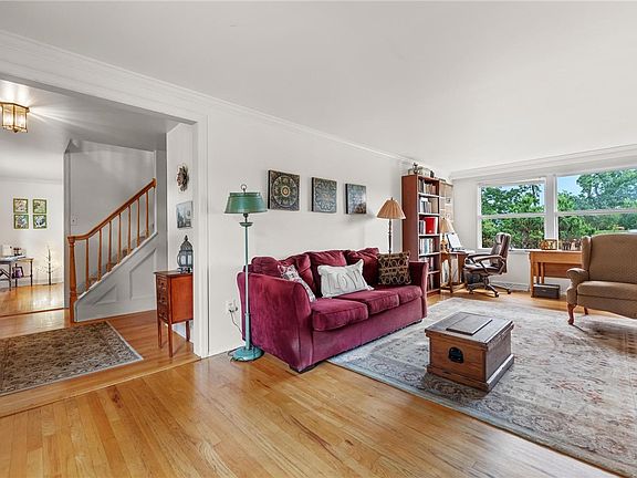 Spectacular 4 bedroom Mt.Lebanon colonial on a quiet cul de sac street ! Lots of natural light floods all rooms! So much space! Large room sizes, higher ceilings, first floor powder room ! Living room is so charming with fireplace, large windows and hardwood floors. Kitchen has been updated and features eat in area, spacious island plus cute sitting area. Very large family room with vaulted ceilings, wall of exposed brick , gas fireplace and access to deck. All Bedrooms have double closets, have ample space for furniture & lots of windows. Primary bedroom has full bath. Great location - close to T stations, major highways and so many shops/restaurants ! Also - easy access to airport and downtown ! Home features over sized driveway and huge side yard. Great curb appeal !! Enjoy Williamsburg Park that's a two minute walk from the house that has a kids play ground, nature trails and pickleball & basketball courts !