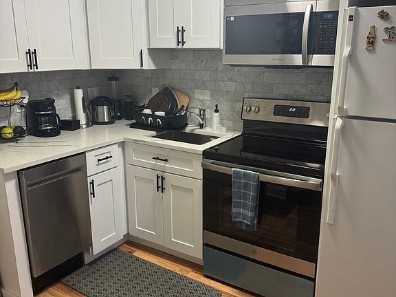 Recently renovated, sun-splashed, one-bedroom condo centrally located in Everett. Beautiful laminate floors throughout. Recently renovated kitchen with gleaming quartz countertops, wine rack, dishwasher, oven, built-in microwave and rolling butcher block countertop. Kitchen has plenty of counter space and a pantry for additional storage. AC throughout (units in bedroom and living room) and three-zone electric baseboard heat. Open concept living/dining area can fit a dining table, a living area, and even a WFH space! Bedroom features two windows, a large closet and can easily fit a queen-sized bed. Bathroom with tile floor, new medicine cabinet, and shower/tub combo with glass door and tile surround. Deeded parking spot behind the building, and the laundry room is right outside your door! Easy access to Route 1 and located steps away from the 109 Bus to Sullivan and Harvard and less than a 10-minute walk to the 104 Bus to Logan Airport. Note that the landlord will have the tenant go through a separate application process than the Zillow application process. Please request a showing before applying. $1,875 per month for a 12-month lease. First month's rent, last month's rent and security deposit of $1,600 required. Absolutely no smoking of any kind and no pets. Two occupant limit per the condo association policies. Landlord pays for water/sewer and trash and snow removal. Tenant responsible for electricity, heat, and internet/cable. Applicants must have strong credit, landlord references, employer references and proof of ability to pay. June 1 lease start date with possibility of May 15 lease start date if application is complete and approved in time.