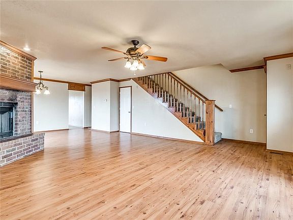 GORGEOUS remodeled, completely electric home in Chickasha! This home as it all: new carpet, tile, granite, countertops, sinks, faucets, light fixtures and MORE! Located on the lower level: the MASSIVE Master Suite with whirlpool tub, walk-in shower, double vanities, and walk-in closet. The kitchen, fully equipped with Stainless steel appliances, island and pantry for ample storage. The semi-formal dining area. The SPACIOUS living room with fireplace and large windows throughout to let in plenty of natural light. Lastly, the half bath for guests. On the upper level: look for the large game room with a full bar and sink, three great-sized bedrooms, and a full. Enjoy the serenity of the property from the brand new deck or the covered porch or patio! Come see this home now while it lasts!