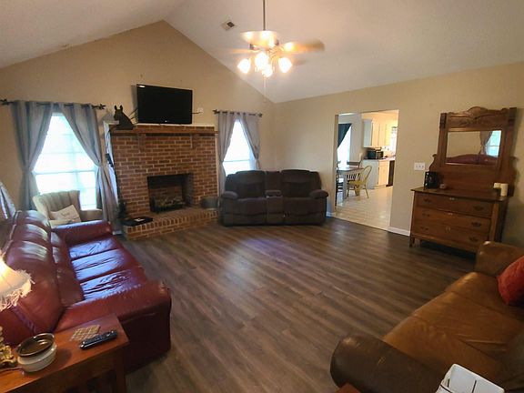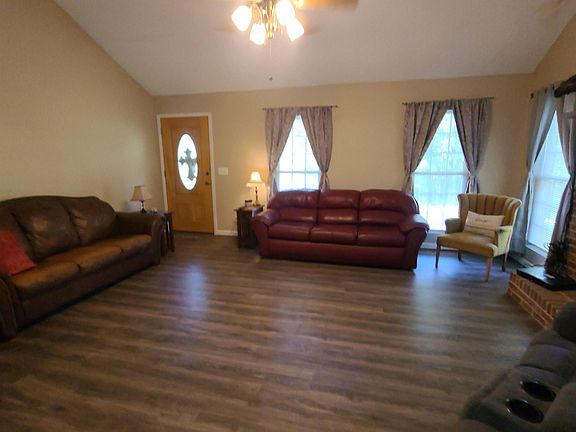 If you are looking for a home close to town that has that country feel, look no more!! This home sits on 1 acre of land that offers a small lake view, outside storage and even a small barn with a fenced in area for pigs, chickens and goats. Once you walk around the yard and see all it has to offer you will already be in love. The inside of the home has so much to offer from it's brick gas fireplace to it's large master bedroom you will feel right at home. This home has plenty of room for everyone!!