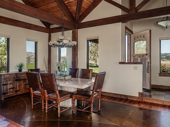 Come home to this timeless property – a custom luxury retreat located just minutes from downtown Bozeman. Privacy and expansive mountain views abound - sold almost 100% turnkey/furnished! Built by Constructive Solutions and beautifully situated on a 1.3+ acre lot, the functional floorplan features open-concept living spaces, restful bedrooms and plentiful outdoor living areas. Exceptional finishes and features include exterior rockwork, reclaimed style timbers, wood doors and cabinetry with gunmetal details, wood trim, newer boiler, in-floor radiant heat and artisan tile details. Main level features a vaulted, timber framed great room with exposed beams, T&G ceilings, concrete and cherry wood flooring. Views towards the Bridgers, Mt Ellis, Frog Rock and the Hyalite are protected by State of Montana and MSU lands on two sides. Wood burning fireplace in the living room keeps things cozy in winter. Plentiful outside access allows for easy inside/outside living in summer. The chef’s kitchen features an island standing bar, a prep sink/wet bar area, concrete counters and a large walk-through pantry. Primary suite on main with wood barrel ceiling, ductless A/C, gas fireplace, cherry flooring, walk-in closet and primary bath with tile shower, soaking tub and twin sinks. Two more spacious bedrooms on main share a hall full bath. Double laundry and mud room on main. Private outdoor spa hot tub with powered lift cover. Daylight lower level features a walk-out to the backyard and full light windows. Lower level features two more roomy bedrooms, game room with pool table and wet bar, spacious family room/2nd living room, interior office/storage area and ¾ bath. Upstairs bonus room suite features a private living room, office/bedroom area and ¾ bath. Extra deep 2 car attached garage with 8’ doors, freezer, task space and storage. Heated gym/studio/shop off garage. Outdoor patios, decks and porches surround the home - perfect venues for morning coffee, evening sunsets and nighttime stargazing. Greenhouse and playset convey. Underground irrigation, lush sod, mature trees and gardens/plantings. Underground invisible dog fence. 5 mins Bozeman Health hospital, historic downtown Bozeman shopping, dining and amenities. Under 5 mins to hiking, running, biking and Nordic skiing trails. 25 mins to Bridger Bowl and Story Mill Park. 20 mins to Bridger Bowl. 30 mins to blue ribbon fly-fishing. 1 hour to Big Sky. Don’t miss the 360 VR Matterport Tour!