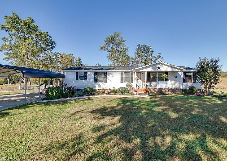 Living is peaceful & quiet on over an acre in North Davidson surrounded by farm land! This beautiful, open concept home provides a welcome space for living and entertaining. Large great room with office, eat in kitchen with walk in pantry, den with built-ins and stone fireplace, an entry way with storage and laundry area. Large master suite with separate shower and garden tub. Enjoy sitting outside on the porch and listening to the sounds of nature. Partially fenced backyard & storage building. Low taxes.