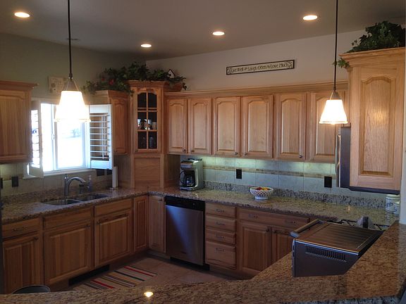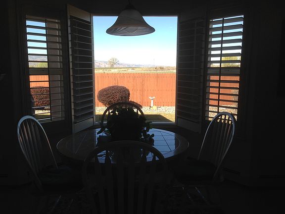 Desirable north Grand Junction location. Watch Incredible sunsets from your covered patio that overlooks an open expanse to the west with clear views all the way to the Colorado National Monument...perfect for gatherings with the cooling breezes of the overhead fan. Large kitchen with granite counters and stainless appliances. Two dining areas: formal and casual, plus three bedrooms and two baths come together for the perfect-sized home of 2,076 sq. feet. The three car garage of 746 sq. feet leads to an utility room. Beautiful easy-to-maintain landscaped yard with irrigation sprinklers is also the perfect size, as is the covered patio. Plantation shutters on all windows, a built-in bookshelf, three-sided fireplace, BreezeAir cooler, hot-water heat and central vac add to the ambiance of this beautiful home. Call 970-683-8986.