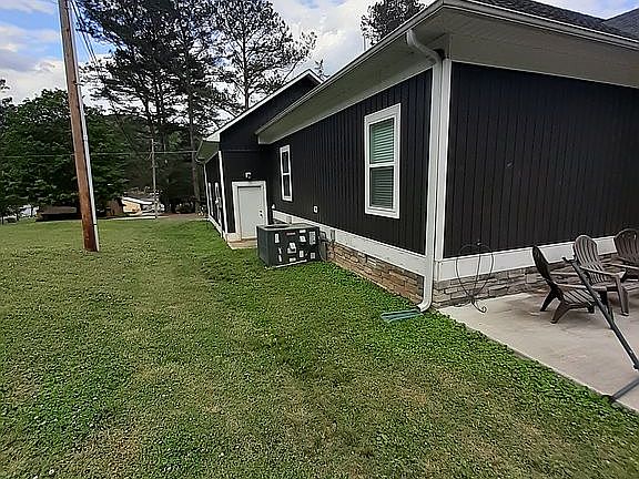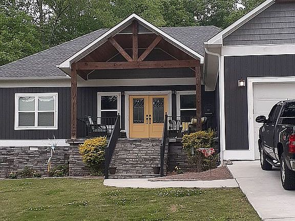 3 bed 2 bath 1728 sq ft home with 2 car garage, vinyl siding, rock foundation, 30 year architectural shingles, spray foam insulation, low E windows, gas fireplace in living room, and whole house gas tankless water heater. Custom kitchen cabinets and granite countertops throughout. Large master bedroom and bath with electric fireplace over jacuzzi tub and 2 large walk in closets. Home has carpet, LVP flooring, and tile. Home has 9 ft ceilings throughout with a raised 10 ft ceiling in living room. There is a 16x10 storage shed in rear and large concrete patio. There are 3 community piers to use and 1.5 miles from TVA boat ramp.