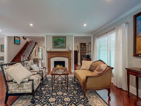 Wonderful, historic home on 1.5 gorgeous acres with gardens and pathways. This home has been the site of many dahlia events as the previous owner raised show-stopping dahlias in her gardens. Located just a couple of minutes' walk to the grocery store, church, dining and theater. The charming main house has three bedrooms, three full baths and two half baths, and there is a cozy guest cottage with an additional two bedrooms and one bath. The current owner enclosed the original carport into a one-car garage that still leaves plenty of space for a workshop bench or storage. The amazing double wooden front door opens to a beautiful living room and lovely breakfast space. The double-sided fireplace separates this area from the large updated kitchen that boasts an oversized granite and wood island, a range/oven that any cook would envy, plus a small seating area and a welcoming library. This level has one bedroom with a private bath that is currently used as an artist's studio. The spacious dining area is augmented by a butler's pantry and opens to a charming covered side deck. The upstairs is the owner's realm with a spacious bedroom, massive closet, and one-and-a-half baths. The terrace level includes a lovely family room with a third fireplace and opens to a stone patio. Another guest suite, laundry, and great storage complete this level. The guest house has a complete kitchen plus two bedrooms, one bath, and a lovely sitting area.