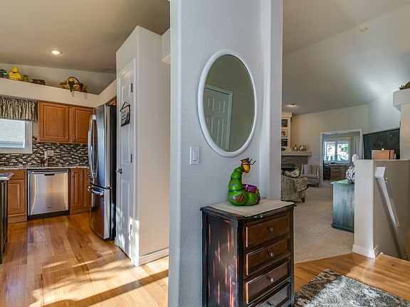 Absolutely perfect end unit backing to common area with garden, path, bridge& pond - updated kitchen with granite tile counters, new stainless steel high end appliances, maple cabinets & maple flooring - updated baths with new tile, slab granite & lighting - cathedrals - rounded corners - plant shelves - A/C & security - French doors - new vinyl windows on main level - real brass chandelier - 6 panel doors - 50 gallon hot water heater - 4 ceiling fans -skylite - great storage - flagstone window wells - custom window
