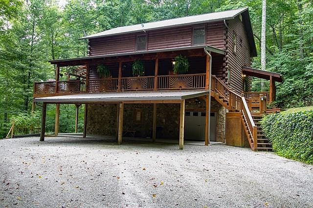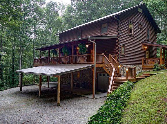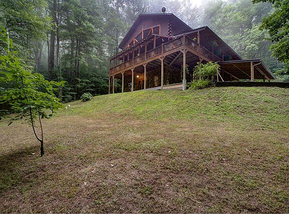 Custom 3 bedroom 3 1/2 bath log cabin sitting in the middle of almost 4 acres in a park-like setting with stream running thru the property! 8" D-log style with poured basement walls that include hydronic heat in slab (including garage), spacious covered decks and patio, metal roof and large 20X22 outbuilding with roll up door to store your toys. Main level features spacious kitchen with stone counter tops and tons of "knotty alder" cabinets flanked by laundry room and 1/2 bath. Dining and living room are well lit with walls of windows and a cathedral ceiling, stone propane fireplace, wired for surround sound, and doors leading onto deck and covered porch. Large master suite has tongue and groove ceilings, private covered porch and ensuite master bath complete with whirlpool tub, shower and dual vanity. Upstairs features an open loft with pool table overlooking the living area, two large bedrooms (one has ladder with kids play loft) and full bath. Basement has large living area complete with bonus room, full bath and kitchenette for mother-in-law suite with interior and exterior access. Heated oversized one car garage in basement has tons of storage PLUS an attached 3 car carport