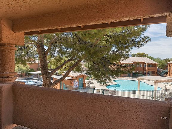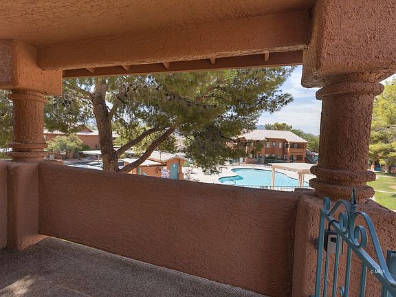 This generous sized 1,192 square foot property is just steps away from the community pool and spa! Come enjoy Mesquite's sunny weather full-time or part-time. This property is spacious enough to be a welcoming primary or secondary residence. This property may also be used as a long term rental investment. Great scenery out your front patio area with surrounding trees giving great shade during the day. Conveniently located near casino/hotels, grocery stores and public parks. Credit towards new paint is being offered directly from seller to new homeowner!