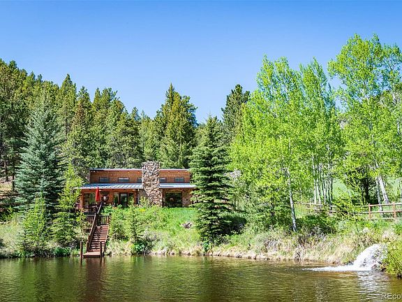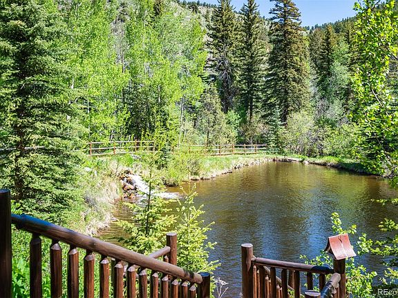 Private, gated water oasis in convenient location between Denver and recreational areas along I-70, including Breckenridge, Vail, Beaver Creek, etc. This unique, all-season water property has a trout pond, waterfalls, a spectacular remodeled cabin, and a guest house. The original mid-century cabin has been completely rebuilt and updated featuring soaring ceilings, walls finished in knotty pine, and log accents that give the home a warm, rustic glow. Walk out from the main level guest bedroom to the hot tub. Upstairs is the master bedroom, guest bedroom, and bathroom. The guest house boasts an open, sun-filled living room with a floor to ceiling rock fireplace, gleaming kitchen, luxurious bath with steam shower, and sleeping quarters. Picturesque Mill Creek ripples by your front door. With municipal sewer, a county maintained paved road, easy access to I-70, and a 45-minute drive to downtown Denver, you can be part of the historic Happy Thought Ranch!