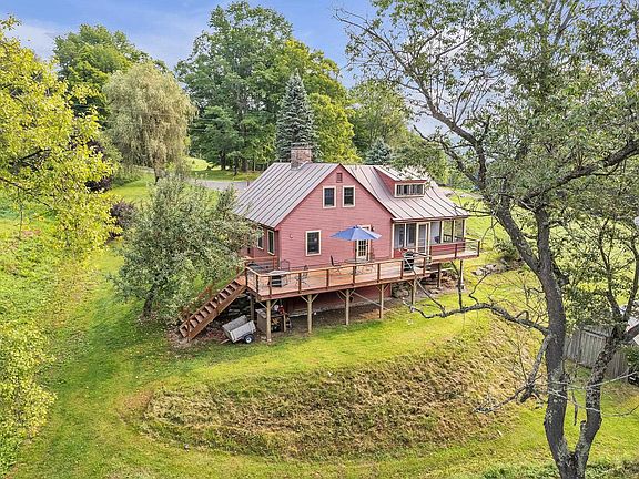 Welcome to your dream home in Sharon, VT! This expanded cape features 2+ bedrooms and 2.5 bathrooms, with a spacious mudroom and a walk-out basement that includes an office. The inviting kitchen boasts a fireplace, perfect for cozy gatherings. Enjoy the large deck overlooking a beautiful yard and a babbling brook where you can pan for gold. The property spans over nine acres of rolling meadows, ideal for outdoor activities, and includes a 14x32 sheep barn. A detached two-car garage with a workshop completes this charming package. Experience the serenity and privacy of this sanctuary.