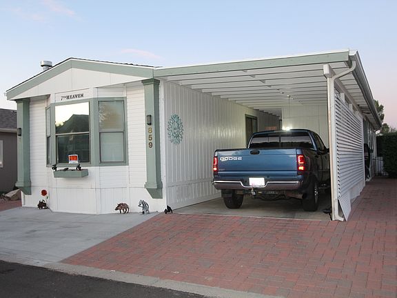 Located on 18-hole golf course!! Sold furnished. Newly renovated kitchen is spacious and equipped with new cabinets, countertops, flooring and appliances: (fridge, smooth top stove, full-size dishwasher, garbage disposal). Master bedroom has Queen size bed and walk-in closet. Guest room houses Queen bed. Washer/dryer included. 2-full baths, one with shower/tub option. New flooring throughout. Arizona room includes hot tub. Ample indoor cabinet and storage space. Livingroom includes gas fireplace and Plantation shutters. Ceiling fans in Livingroom and Master Bdrm. Scenic view of on deck right on golf course. BBQ area. New outdoor storage shed. Drip system in place for outdoor plants. Carport space for 2 vehicles. Extra storage room off carport for tools. Zippy "Club Car" golf cart with hard sided doors included. Paved golf cart parking. Located in a 55+ community with access to: swimming pool, tennis and Pickleball courts, a well-equipped fitness center and heated spa, social hall with a stage, catering kitchen, library, woodshop, and rooms for billiards, cards, and much more! No lot rent, you own the land too. "7th Heaven" is move-in ready and waiting for you!