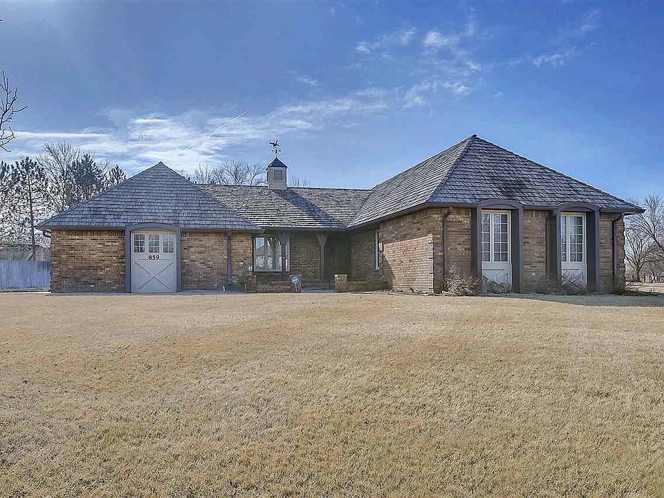 Are you needing more space? Then this is the house for your!!! 859 N. Sandpiper is an all brick ranch situated on a half an acre corner lot in the well established neighborhood of Overbrook! This warm and inviting home features a lovely living room with vaulted wood beamed ceilings, fireplace with brick surround, two built-in bookcases, large windows, Pella sliding glass door to the patio, and two-way wet bar. The light and bright kitchen features great cabinet space, center island, tile backsplash, built-in desk, and pantry area. This home also includes a formal dining area with large windows, chandelier, chair rail molding and an informal breakfast room with lots of large windows and vaulted ceiling. Spend restful nights in this main floor master suite complete with walk-in closet, carpeting, large windows, private bathroom with whirlpool soaker tub, his/her sinks, separate shower, and access to the main floor office. Working from home will be a pleasure in this office complete with two-way wet bar, two Pella sliding glass doors to the patio, two skylights, and carpet. This main floor also includes two additional spacious bedrooms and a full bathroom. Entertain with ease in this huge finished basement complete with a family room, a rec room, and a game room with great built-ins. This lower level also features the fourth bedroom with daylight window and closet, a full bathroom, ample storage closets, and two bonus rooms with a huge walk-in closet between them. This home also features a sprinkler system, irrigation well, and enough room to run and play! The breakfast room is getting 2 new Pella windows soon too.