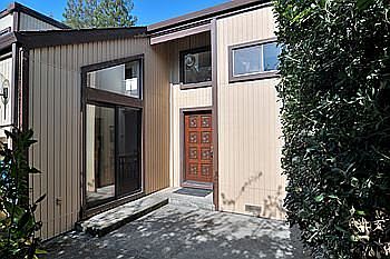 Spectacular end unit townhome in a quiet community that lives like a single-family home, only sharing the garage wall with neighbor. This 3-bedroom, 2.5 bath property features an open floor plan with a soaring vaulted ceiling, gleaming hardwood floors throughout, maple cabinetry, granite countertops, full backsplash, stainless appliances and updated bathrooms with Porcelanosa tiles, quartz counters & brushed nickel hardwares. Unique open gallery 2nd floor hallway w/cathedral ceiling. Double pane sliding doors, central heating & air conditioning. Two bedrooms have walk-in closets with Elfa customized organizer. Attached garage and assigned parking spot, enclosed front patio & a tranquil backyard. This resort-like community has a clubhouse, a tennis court, a spa and a lovely pool. Close to shopping, restaurants, school, Ponderosa Park & high tech companies (10 minutes to Google, Apple, LinkedIn by car and 10 mins walk to FB shuttle stop on Wolfe & El Camino).